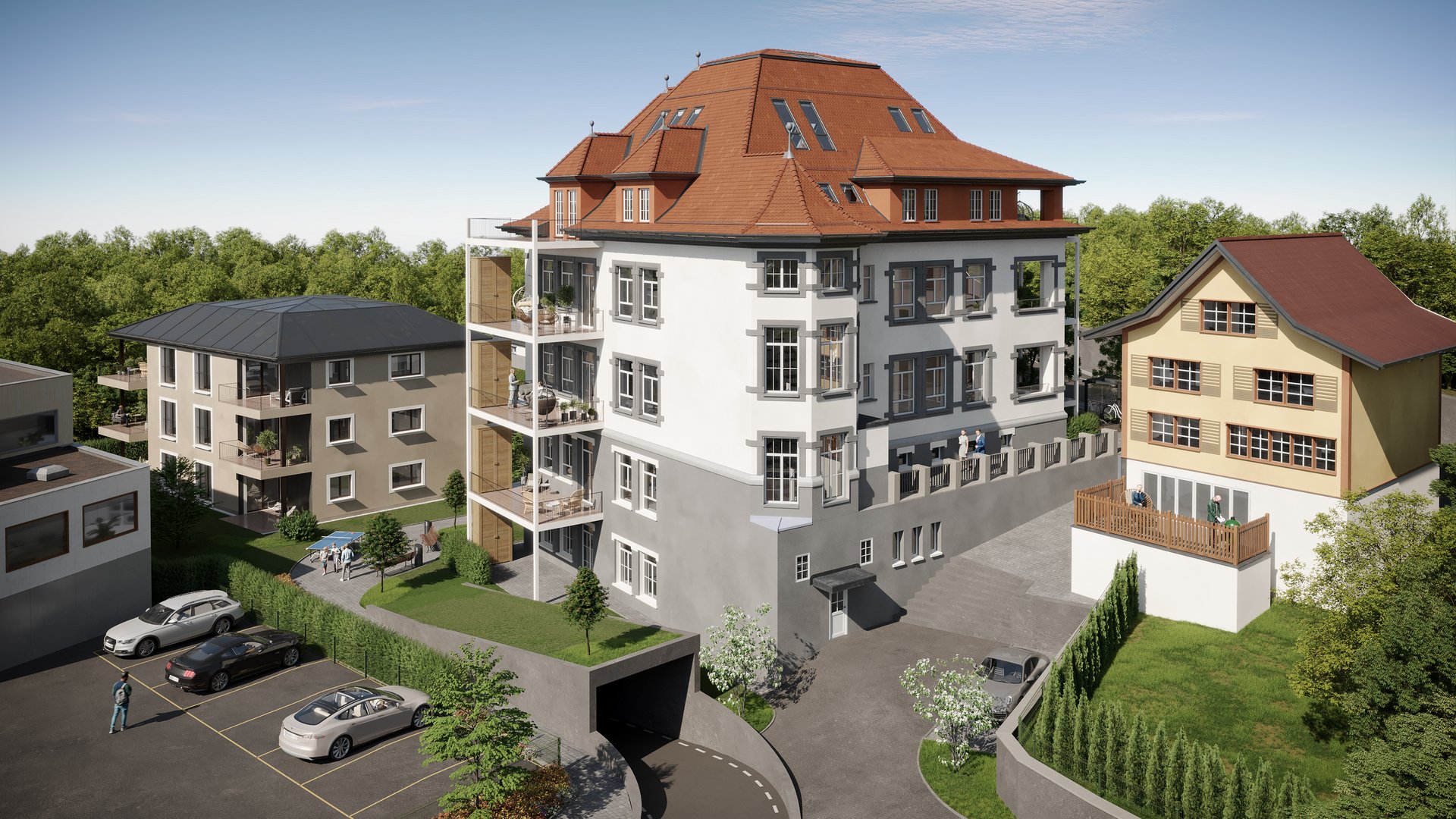 Das Schulhaus Steig wird sorgfältig zu einem Mehrfamilienhaus mit grosszügigen Eigentumswohnungen umgebaut. Dabei wird der Charakter des Gebäudes erhalten und dem Wohnkomfort Rechnung getragen. So erhalten beispielsweise alle Wohnungen einen Balkon/Loggia bzw. eine Terrasse. Die Wohnungen werden so ausgerichtet, dass viel Licht in die Wohnräume gelangt und durch die offene Gestaltung verschmelzen Küche, Wohn- und Esszimmer.